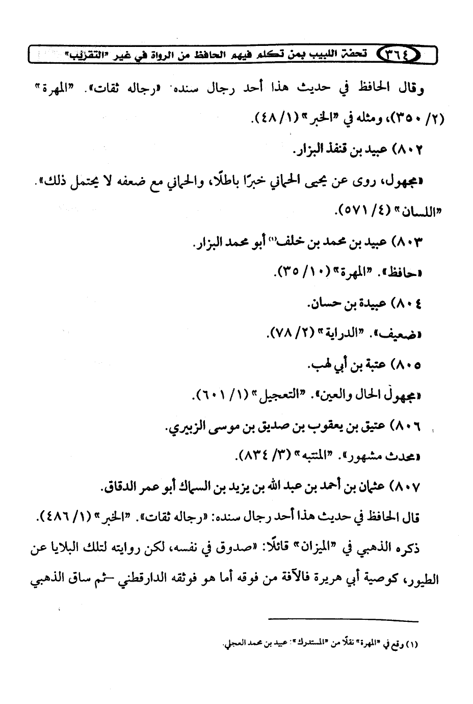 " مجهول الحال والعين". "التعجيل" (1/ 601).