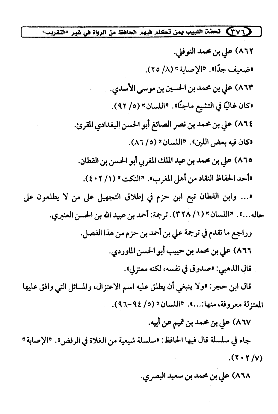 كتاب تحفة اللبيب بمن تكلم فيهم الحافظ ابن حجر من الرواة في غير «التقريب» (اسم الجزء: 2)