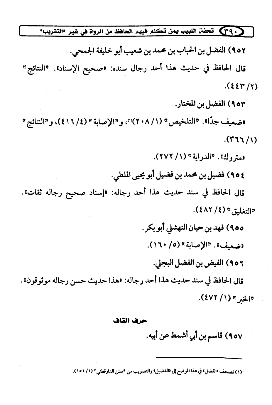 (¬1) تصحف "الفضل" في هذا الموضع إلى "الفضيل" والتصويب من "سنن الدارقطني" (1/ 151).