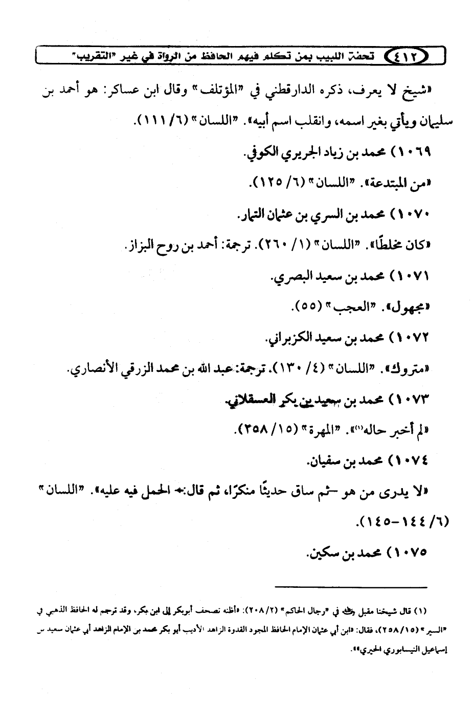 " متروك". "اللسان" (4/ 130). ترجمة: عبد الله بن محمد الزرقي الأنصاري.