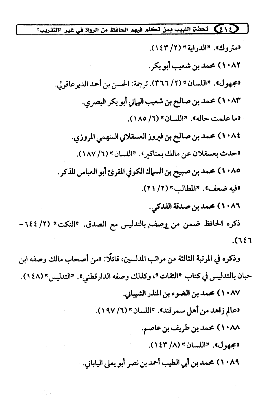 كتاب تحفة اللبيب بمن تكلم فيهم الحافظ ابن حجر من الرواة في غير «التقريب» (اسم الجزء: 2)