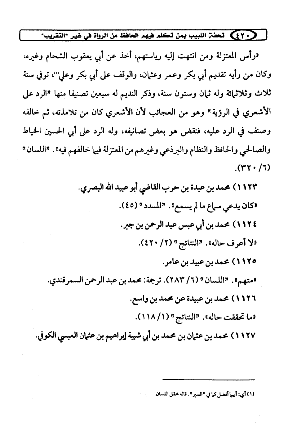 " لا أعرف حاله". "النتائج" (2/ 420).