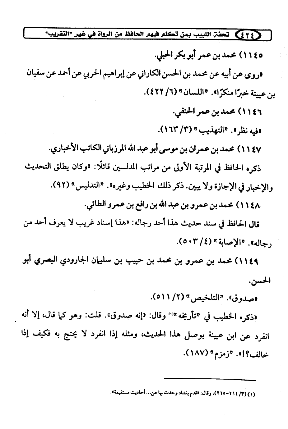 كتاب تحفة اللبيب بمن تكلم فيهم الحافظ ابن حجر من الرواة في غير «التقريب» (اسم الجزء: 2)