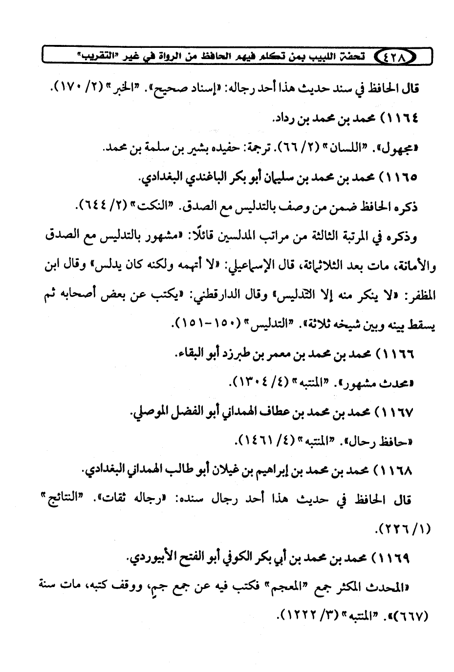 كتاب تحفة اللبيب بمن تكلم فيهم الحافظ ابن حجر من الرواة في غير «التقريب» (اسم الجزء: 2)