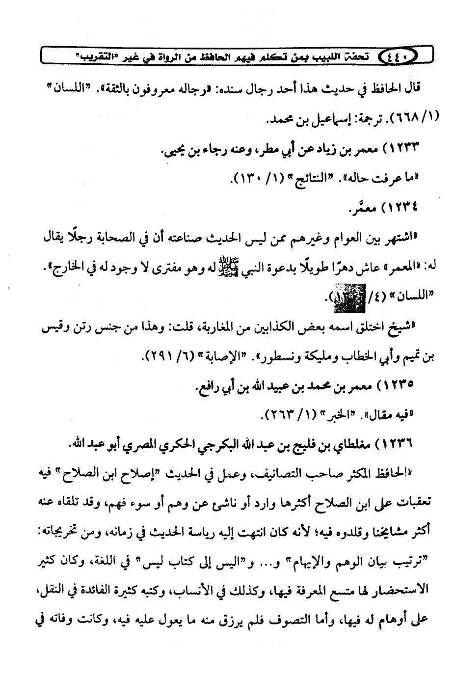 كتاب تحفة اللبيب بمن تكلم فيهم الحافظ ابن حجر من الرواة في غير «التقريب» (اسم الجزء: 2)