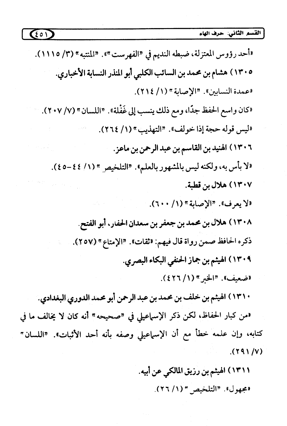 1305) هشام بن محمد بن السائب الكلبي أبو المنذر النسابة الأخباري: