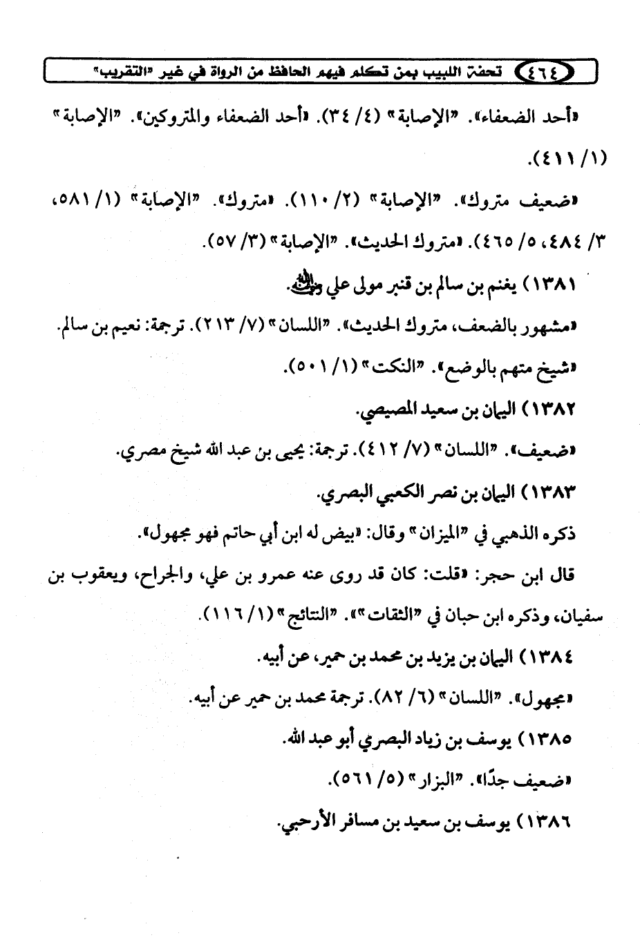 " مجهول". "اللسان" (6/ 82). ترجمة محمد بن حمير عن أبيه.