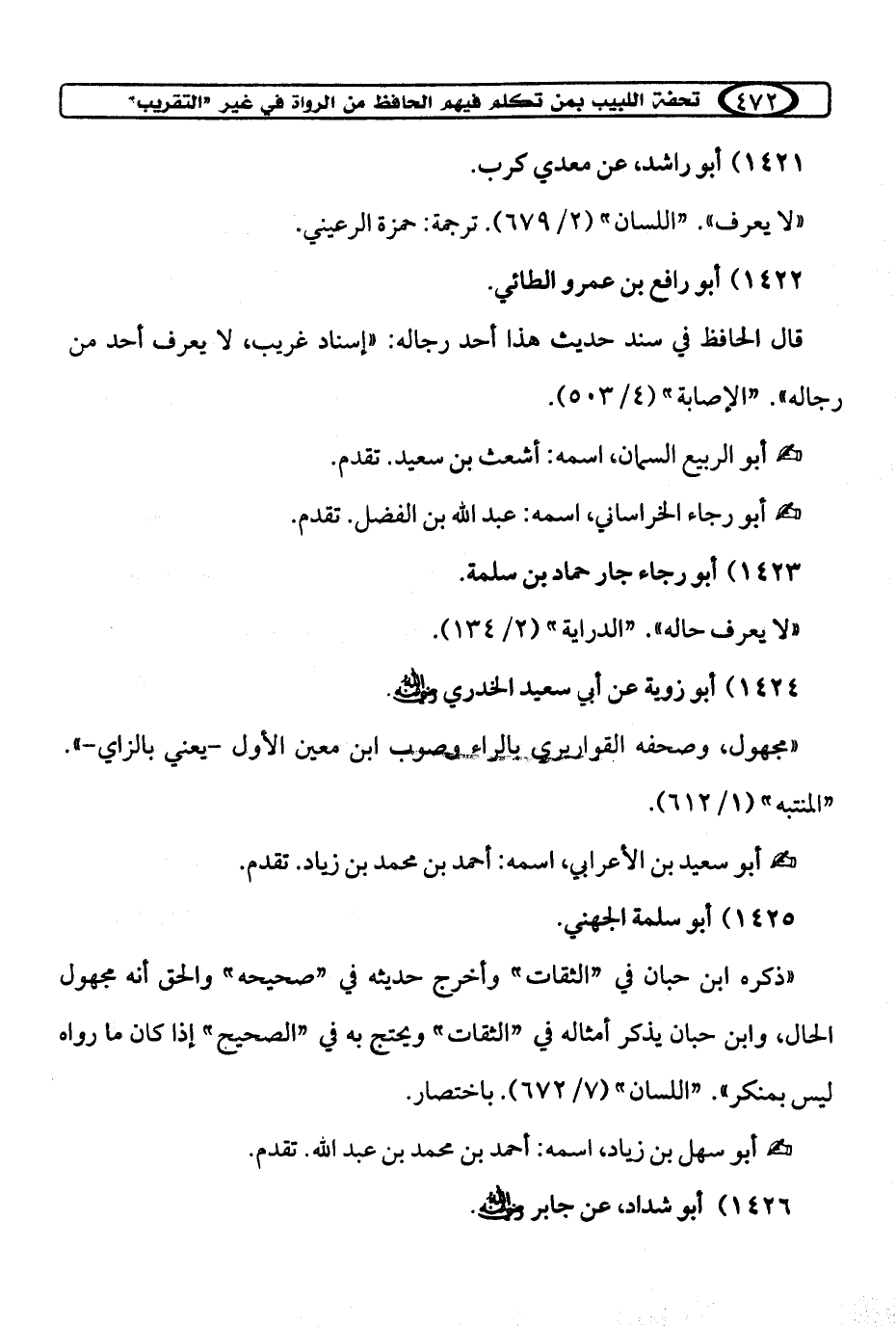 كتاب تحفة اللبيب بمن تكلم فيهم الحافظ ابن حجر من الرواة في غير «التقريب» (اسم الجزء: 2)