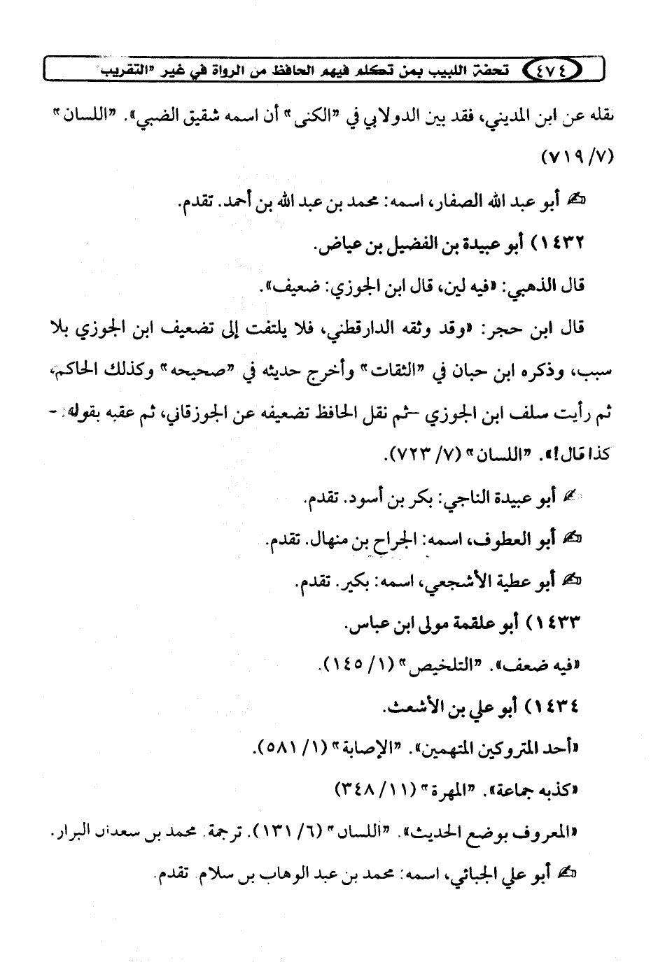 كتاب تحفة اللبيب بمن تكلم فيهم الحافظ ابن حجر من الرواة في غير «التقريب» (اسم الجزء: 2)