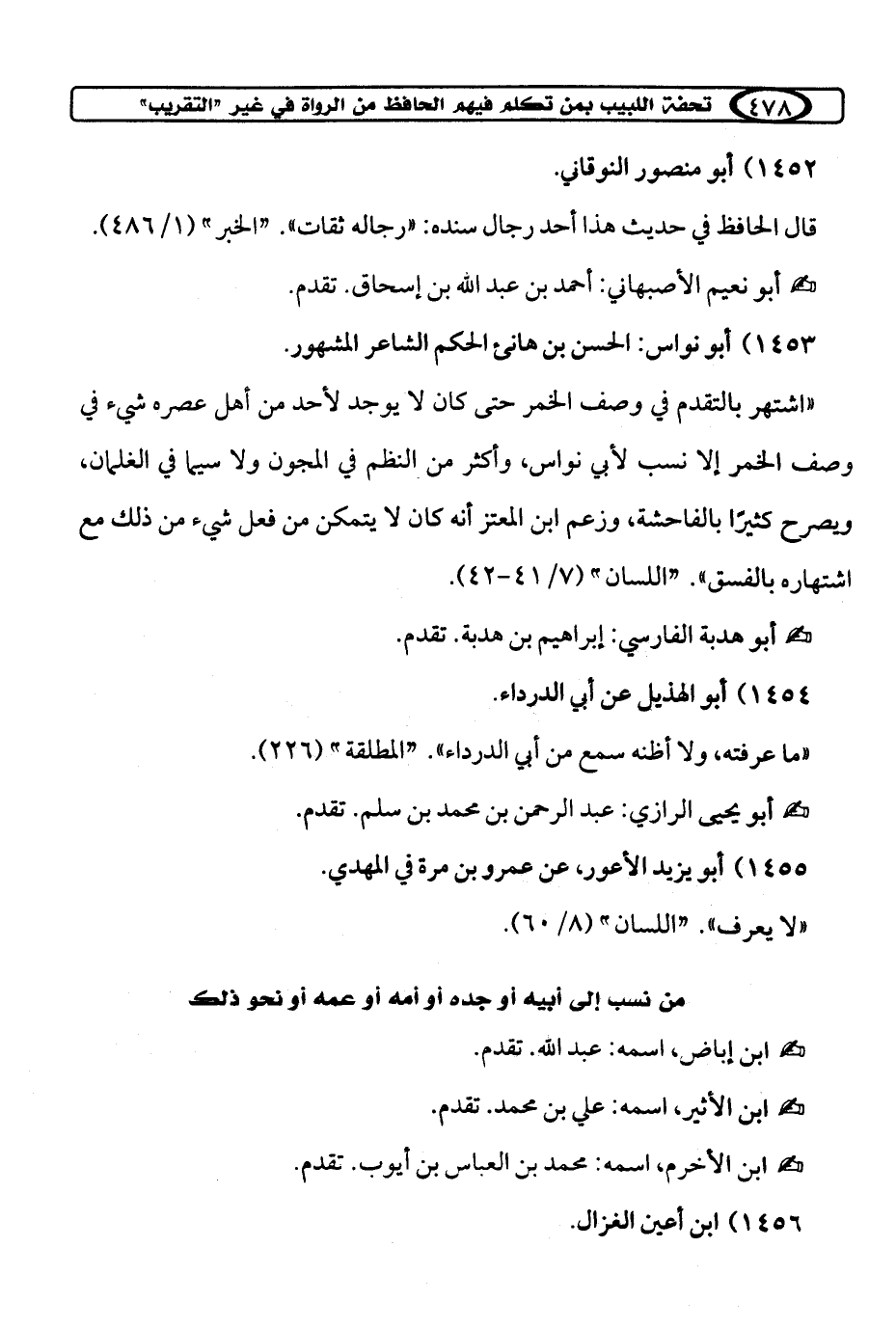 1453) أبو نواس: الحسن بن هانئ الحكم الشاعر المشهور.