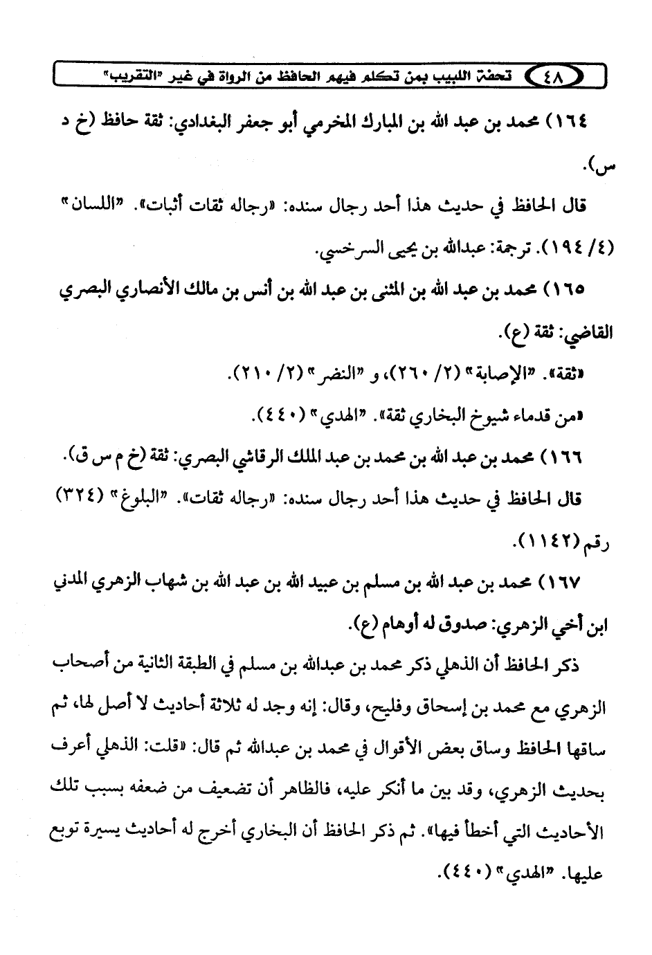 165) محمد بن عبد الله بن المثنى بن عبد الله بن أنس بن مالك الأنصاري البصري القاضي: ثقة (ع).