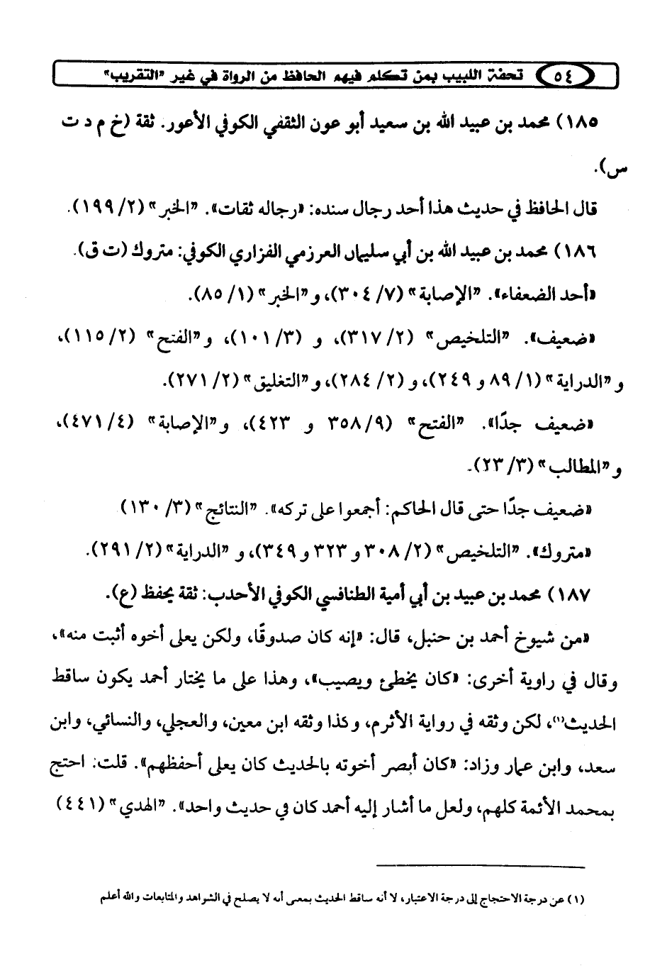 187) محمد بن عبيد بن أبي أمية الطنافسي الكوفي الأحدب: ثقة يحفظ (ع).