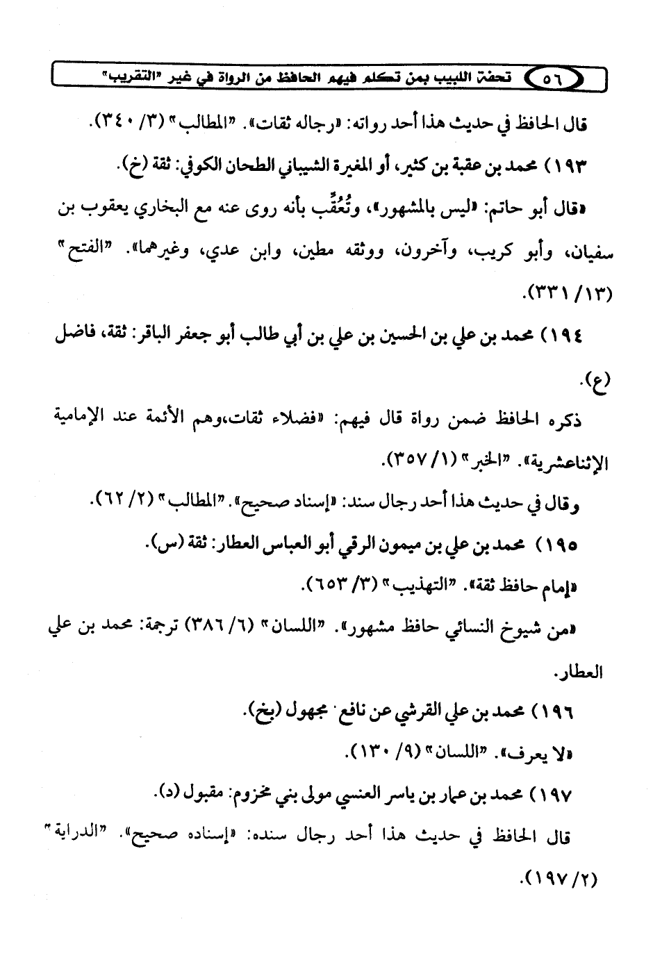 كتاب تحفة اللبيب بمن تكلم فيهم الحافظ ابن حجر من الرواة في غير «التقريب» (اسم الجزء: 2)