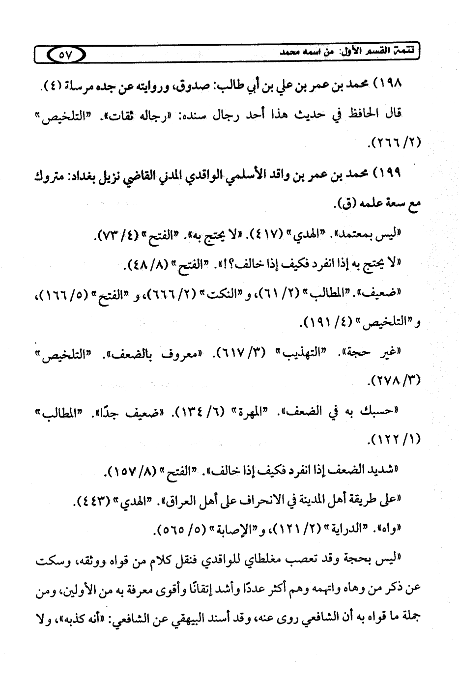 199) محمد بن عمر بن واقد الأسلمي الواقدي المدني القاضي نزيل بغداد: متروك مع سعة علمه (ق).