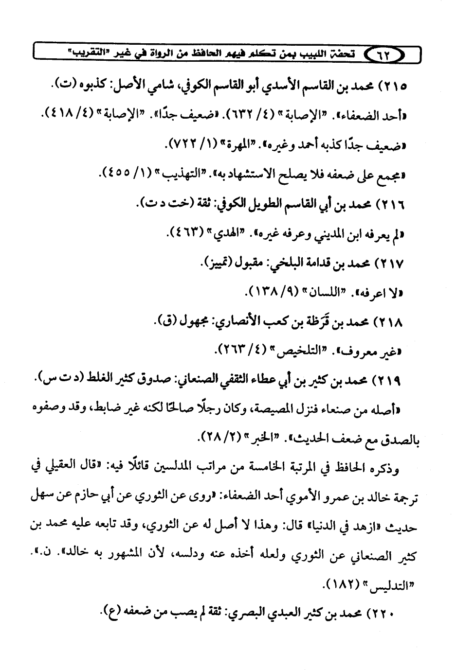 كتاب تحفة اللبيب بمن تكلم فيهم الحافظ ابن حجر من الرواة في غير «التقريب» (اسم الجزء: 2)