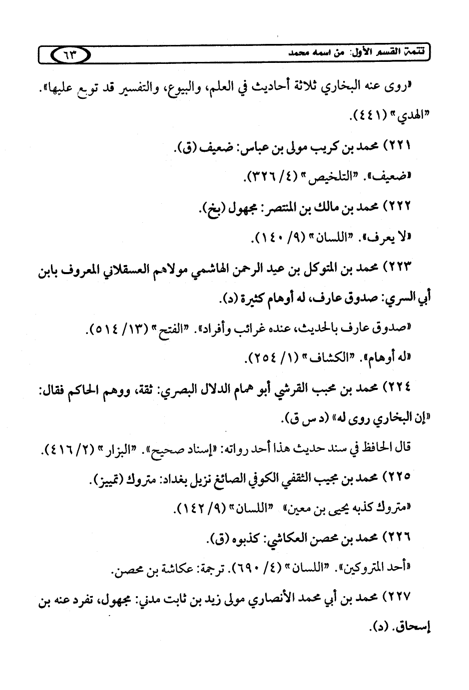 "أحد المتروكين". "اللسان" (4/ 690). ترجمة: عكاشة بن محصن.