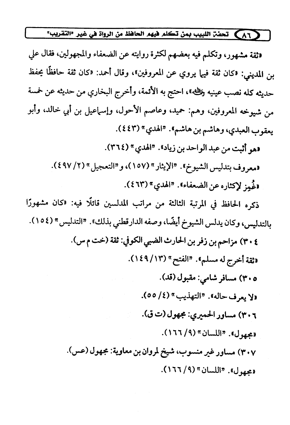 كتاب تحفة اللبيب بمن تكلم فيهم الحافظ ابن حجر من الرواة في غير «التقريب» (اسم الجزء: 2)