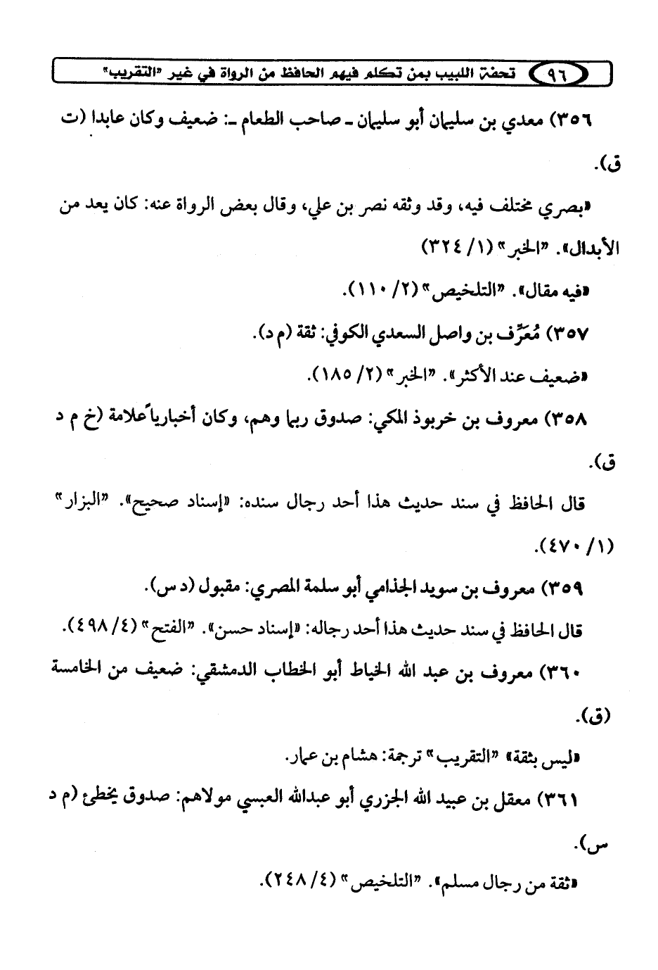 358) معروف بن خربوذ المكي: صدوق ربما وهم، وكان أخباريًا علامة (خ م د ق).