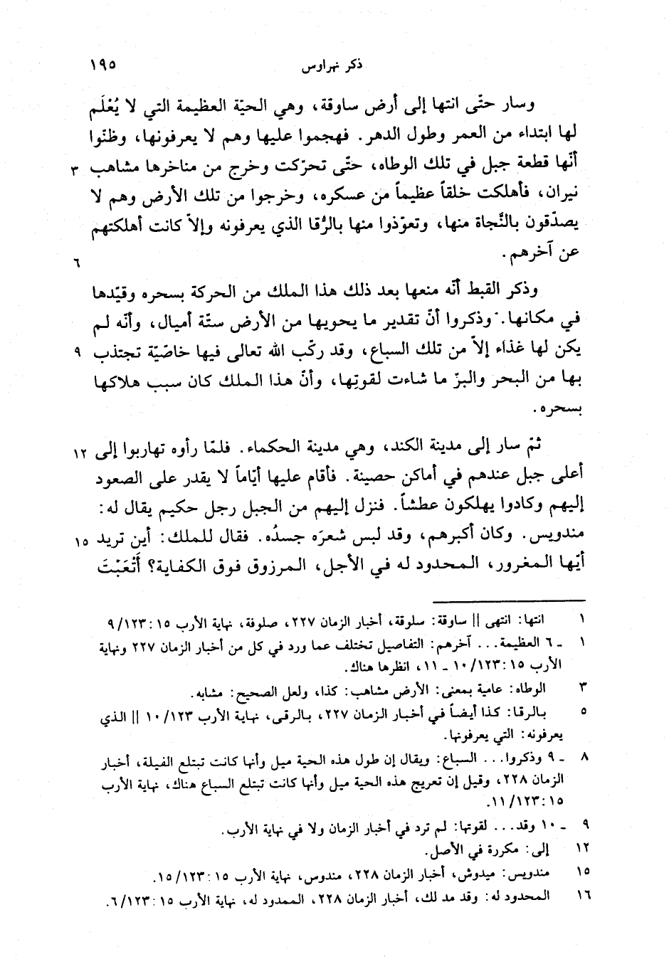 وسار حتّى انتها إلى أرض ساوقة، وهي الحيّة العظيمة التي لا يعلم لها ابتداء من العمر وطول الدهر. فهجموا عليها وهم لا يعرفونها، وظنّوا أنّها قطعة جبل في تلك الوطاه، حتّى تحرّكت وخرج من مناخرها مشاهب نيران، فأهلكت خلقا عظيما من عسكره، وخرجوا من تلك الأرض وهم لا يصدّقون بالنّجاة منها، وتعوّذوا منها بالرّقا الذي يعرفونه وإلاّ كانت أهلكتهم عن آخرهم.