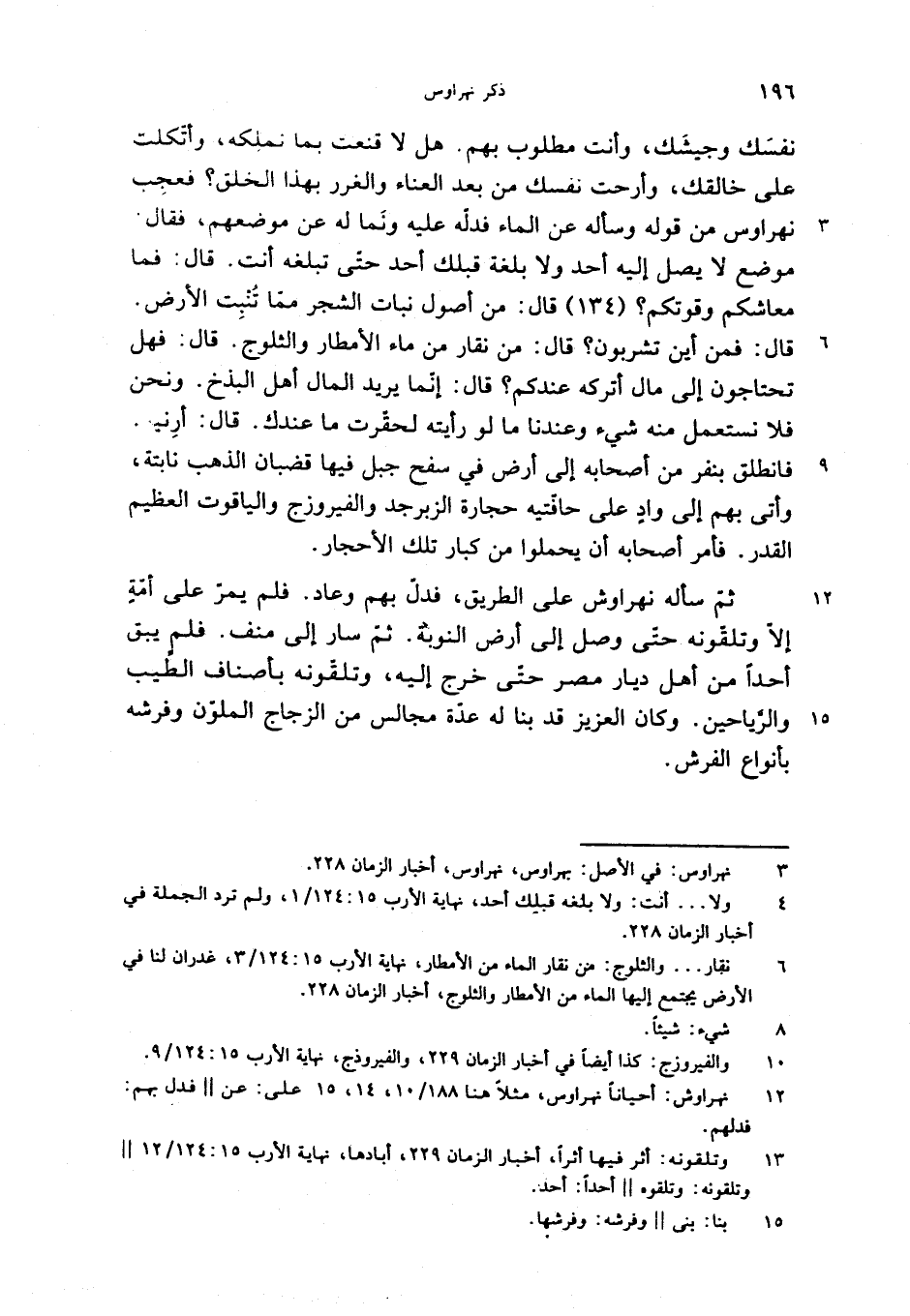 نفسك وجيشك، وأنت مطلوب بهم. هل لا قنعت بما تملكه، وأتّكلت على خالقك، وأرحت نفسك من بعد العناء والغرر بهذا الخلق؟ فعجب نهراوس من قوله وسأله عن الماء فدلّه عليه ونما له عن موضعهم، فقال: