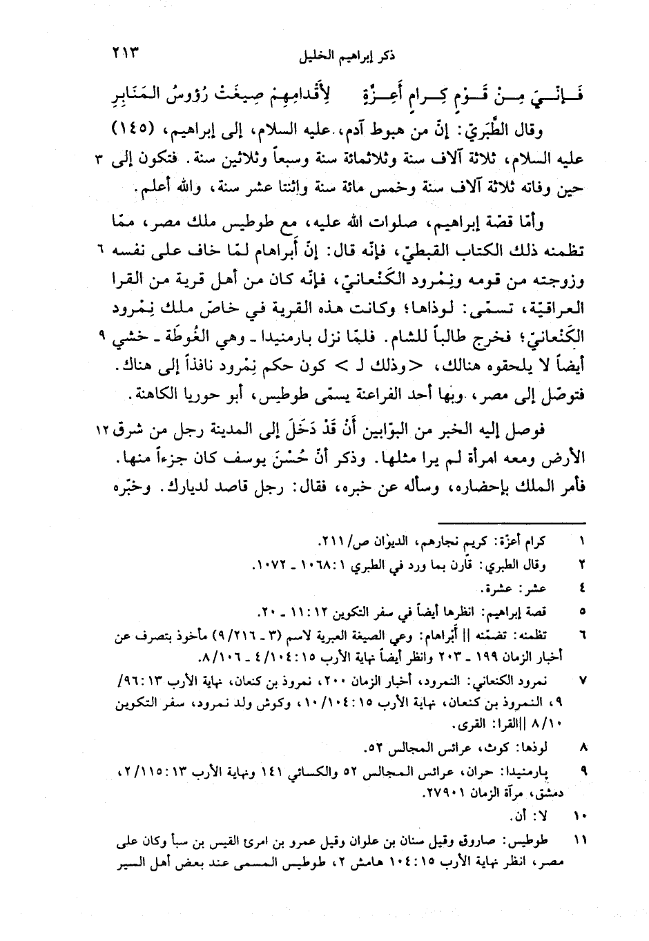 وأمّا قصّة إبراهيم، صلوات الله عليه، مع طوطيس ملك مصر، ممّا تظمنه ذلك الكتاب القبطيّ، فإنّه قال: إنّ أبراهام لمّا خاف على نفسه وزوجته من قومه ونمرود الكنعانيّ، فإنّه كان من أهل قرية من القرا العراقيّة، تسمّى: لوذاها؛ وكانت هذه القرية في خاصّ ملك نمرود الكنعانيّ؛ فخرج طالبا للشام. فلمّا نزل بارمنيدا-وهي الغوطة-خشي أيضا لا يلحقوه هنالك، <وذلك ل> كون حكم نمرود نافذا إلى هناك.