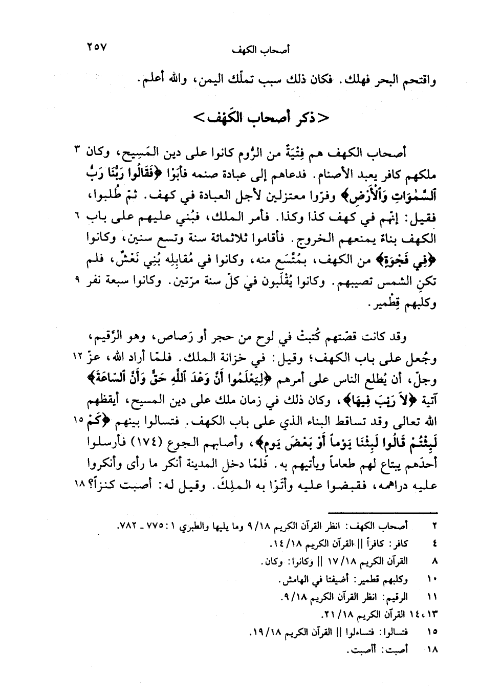 أصحاب الكهف هم فتية من الرّوم كانوا على دين المسيح، وكان ملكهم كافر يعبد الأصنام. فدعاهم إلى عبادة صنمه فأبوا {فَقالُوا رَبُّنا رَبُّ السَّماااتِ وَالْأَرْضِ} وفرّوا معتزلين لأجل العبادة في كهف. ثمّ طلبوا، فقيل: إنّهم في كهف كذا وكذا. فأمر الملك، فبني عليهم على باب الكهف بناء يمنعهم الخروج. فأقاموا ثلاثمائة سنة وتسع سنين، وكانوا {فِي فَجْوَةٍ} من الكهف، بمتّسع منه، وكانوا في مقابله بني نعش، فلم تكن الشمس تصيبهم. وكانوا يقلبون في كلّ سنة مرّتين. وكانوا سبعة نفر وكلبهم قطمير.