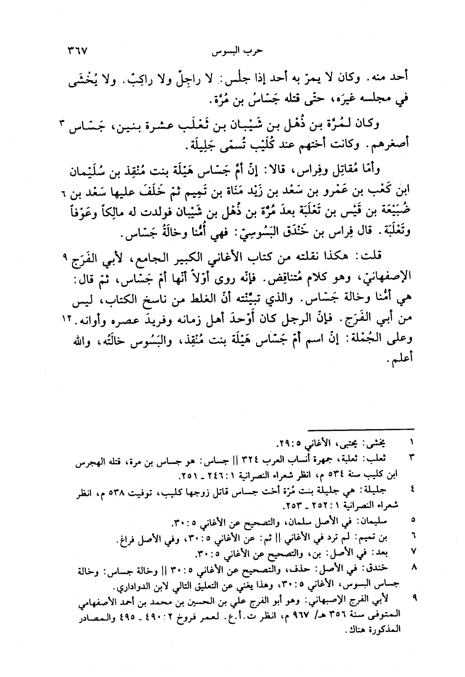 هي أمّنا وخالة جسّاس. والذي تبيّنته أنّ الغلط من ناسخ الكتاب، ليس من أبي الفرج. فإنّ الرجل كان أوحد أهل زمانه وفريد عصره وأوانه.