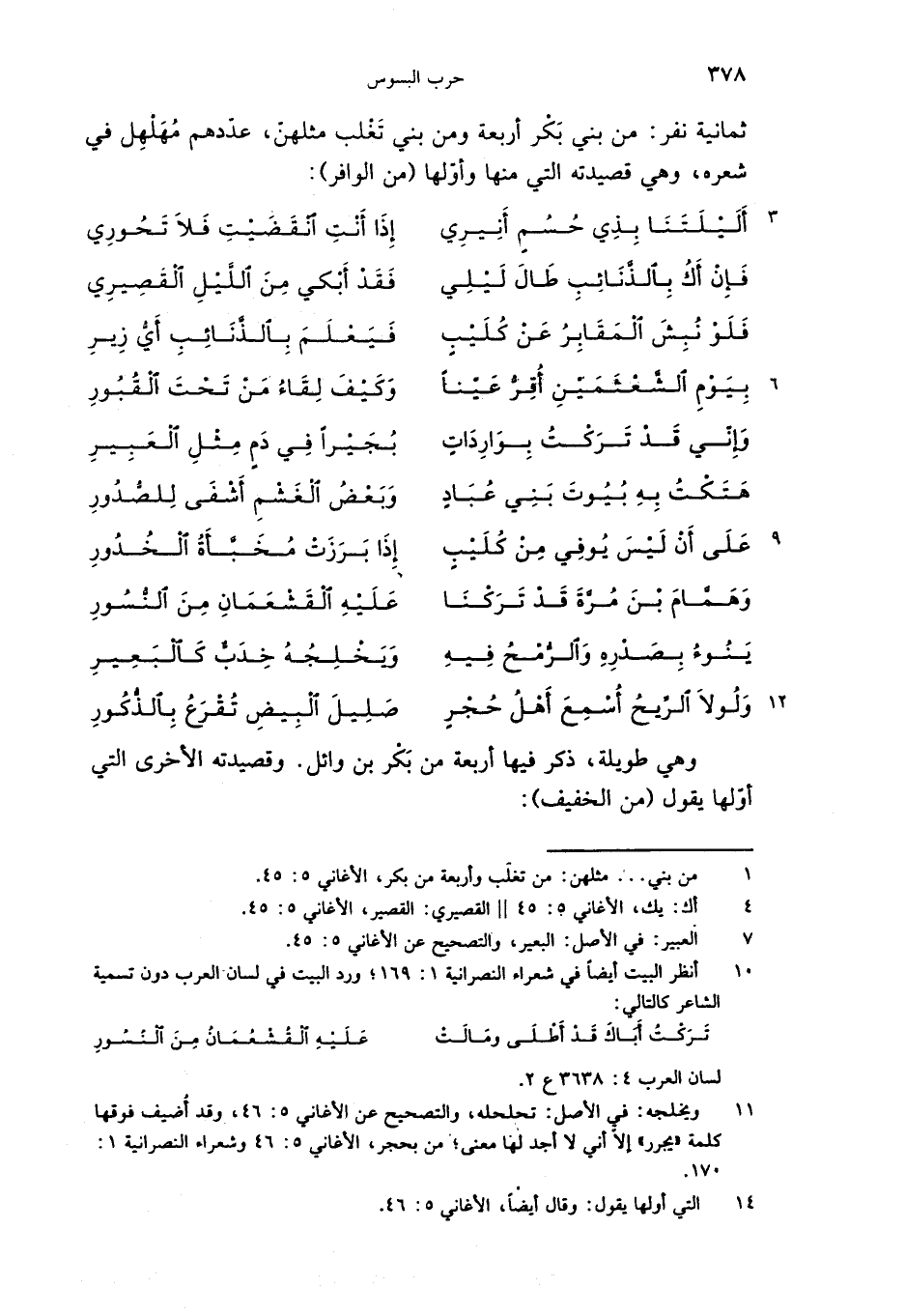 وهي طويلة، ذكر فيها أربعة من بكر بن وائل. وقصيدته الأخرى التي أوّلها يقول (من الخفيف):