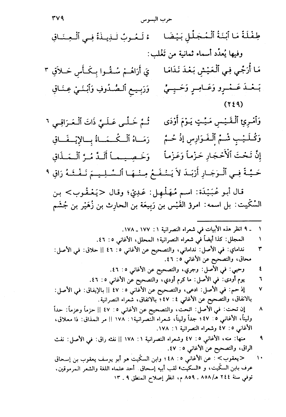 وفيها يعدّد أسماء ثمانية من تغلب:
