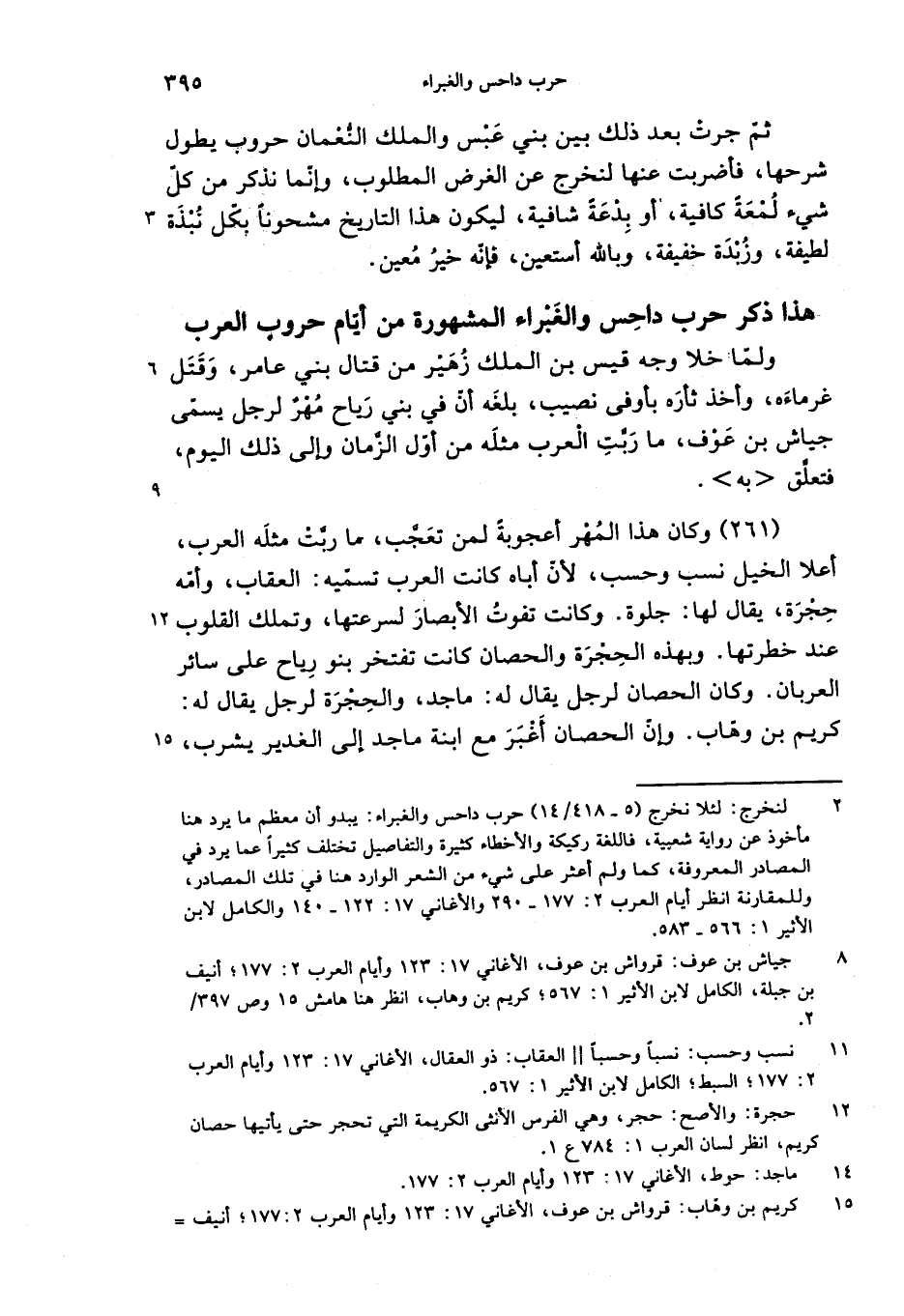 ثمّ جرت بعد ذلك بين بني عبس والملك النّعمان حروب يطول شرحها، فأضربت عنها لنخرج عن الغرض المطلوب، وإنّما نذكر من كلّ شيء لمعة كافية، أو بدعة شافية، ليكون هذا التاريخ مشحونا بكلّ نبذة لطيفة، وزبدة خفيفة، وبالله أستعين، فإنّه خير معين.