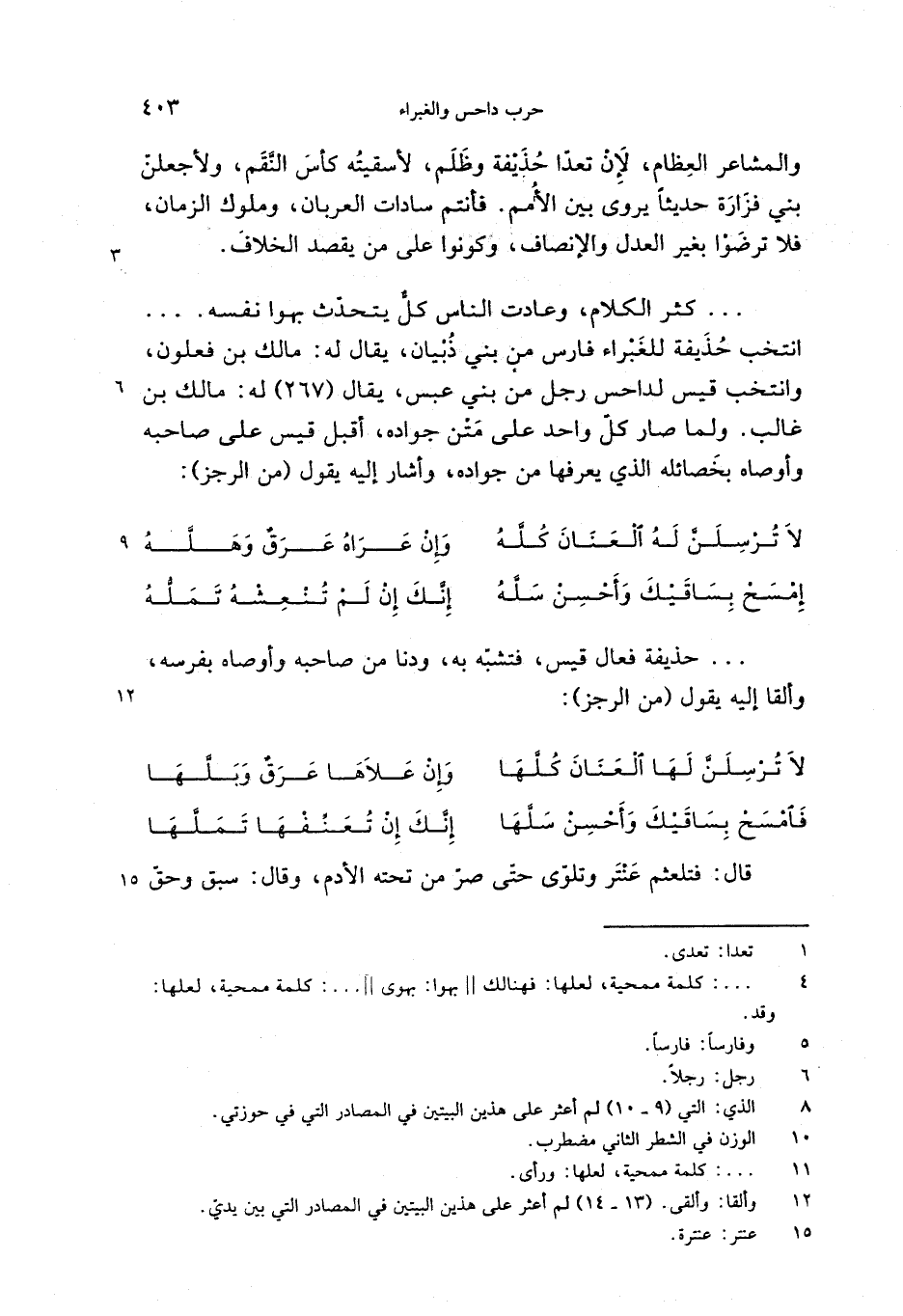 . . . حذيفة فعال قيس، فتشبّه به، ودنا من صاحبه وأوصاه بفرسه، وألقا إليه يقول (من الرجز):