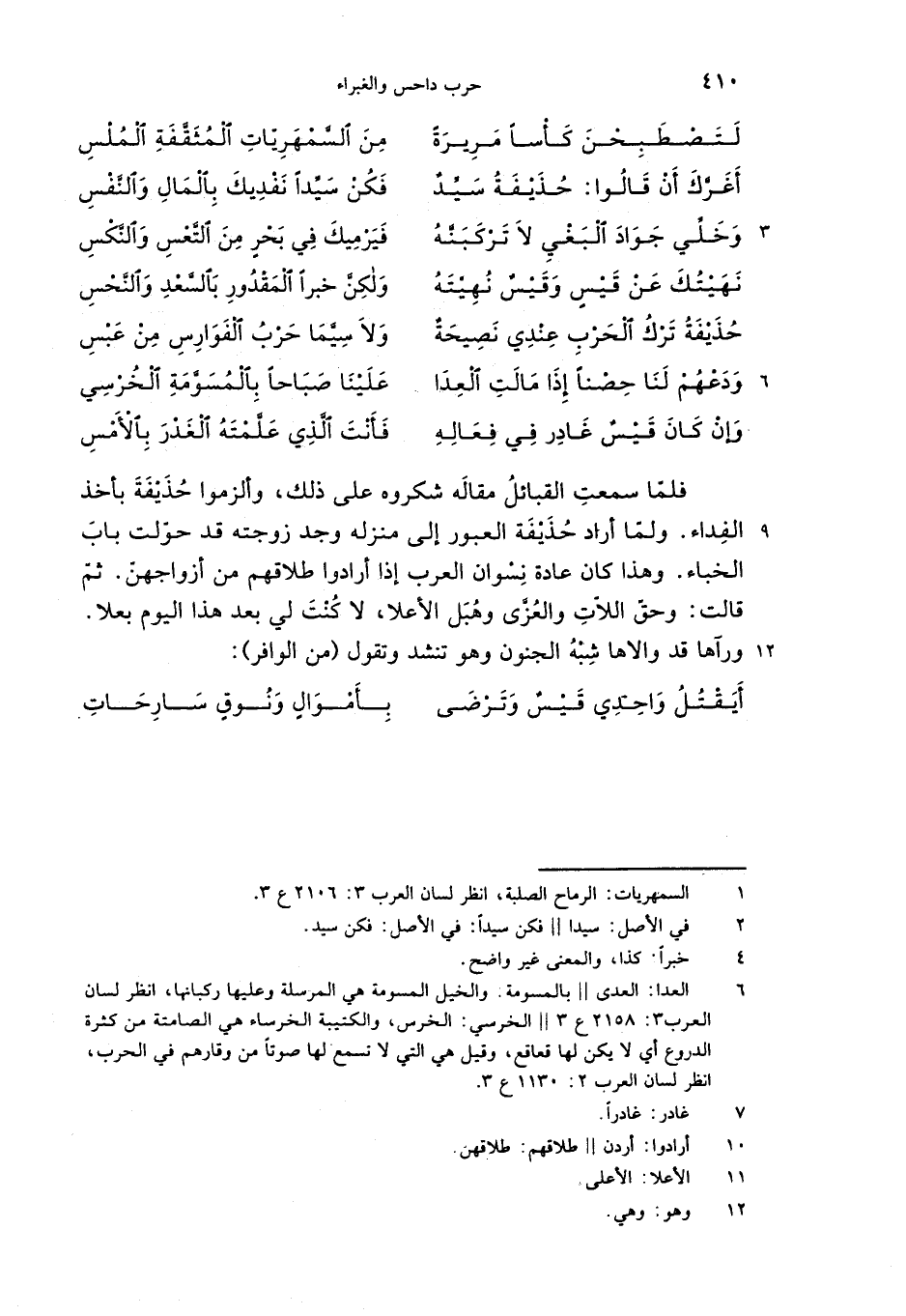 حذيفة ترك الحرب عندي نصيحة … ولا سيّما حرب الفوارس من عبس