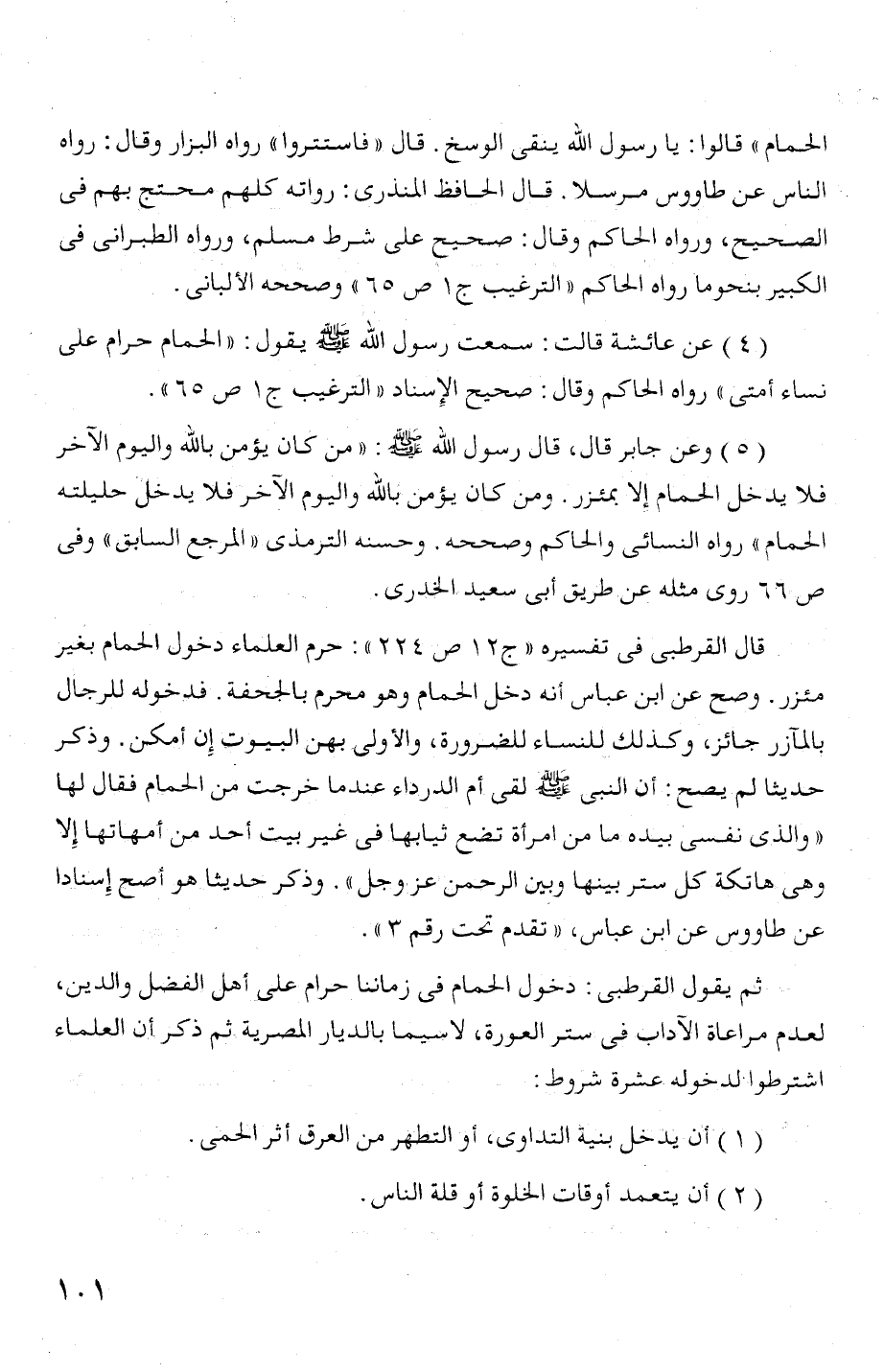 ثم يقول القرطبى: دخول الحمام فى زماننا حرام على أهل الفحل والدين،