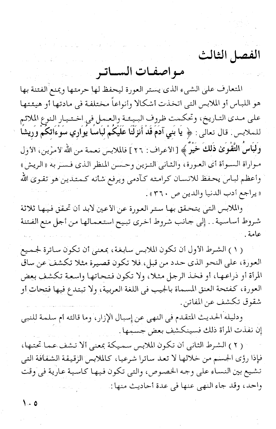والملابس التع! يتحقق بها ستر العورة عن الأ عيهط لابد أن تحقة! فيها ثلاثة