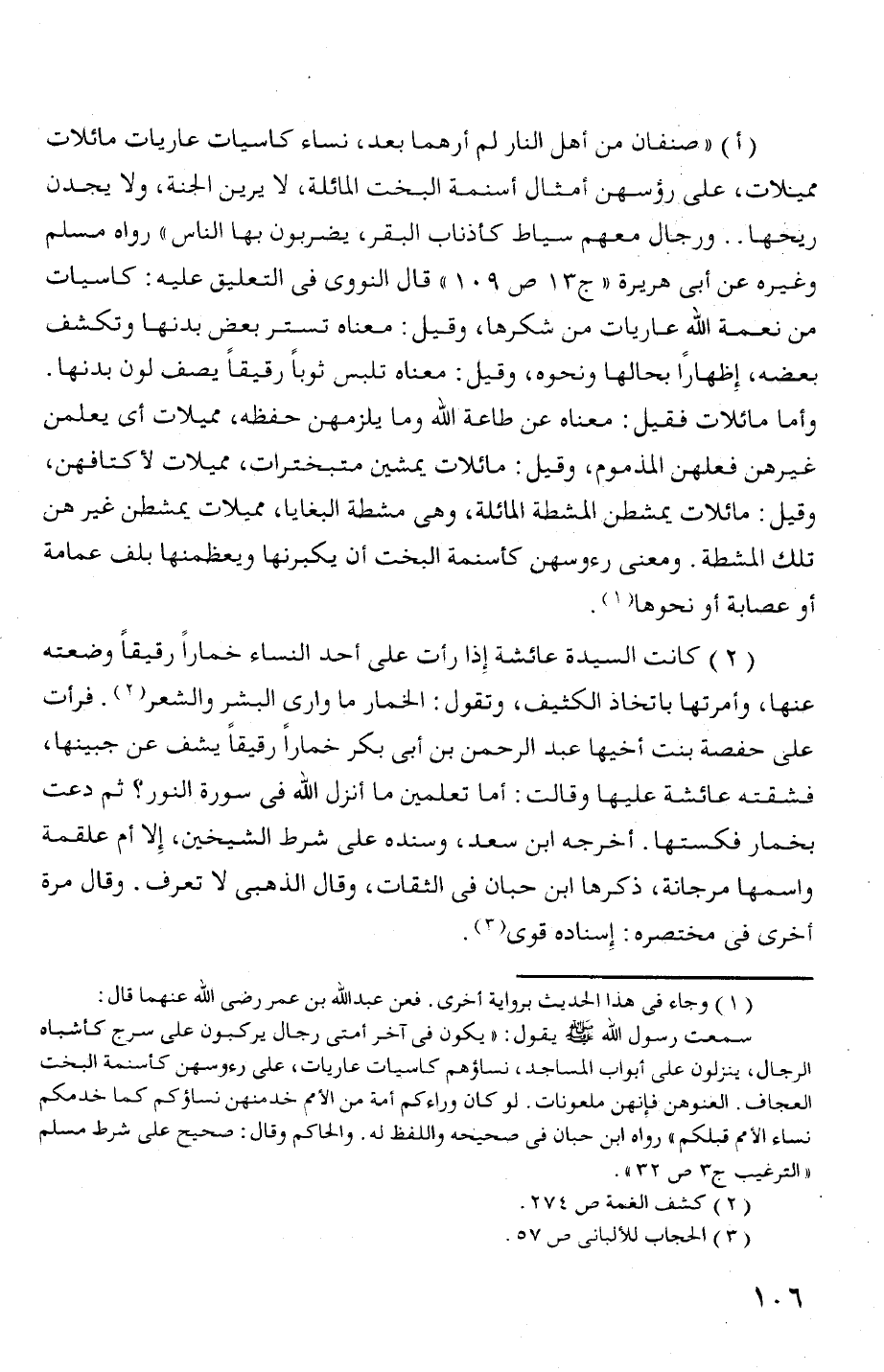 وغيره عن أبر! هريرة " ج 3 1 ص 9 0 1 " قال النووى فى التعليق عليه: كاسيات