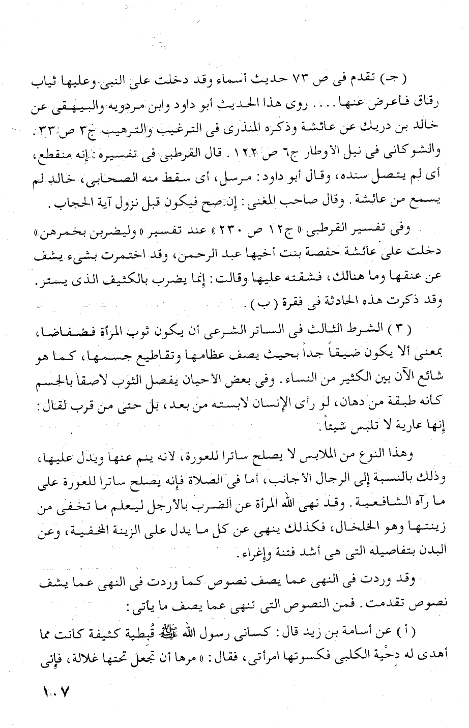 (ج) تقدم فئ ع 73 حدلث أسماء ومد دخلت على النبى وعليها ثياب