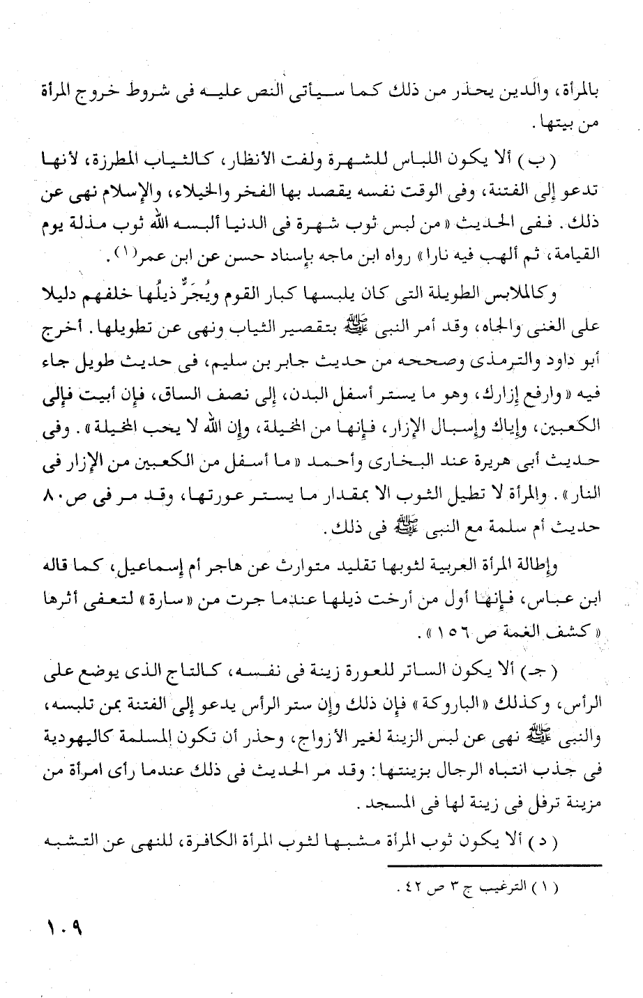 (د) ألا يكون ثوب المرأة مشبها لثوب المرأة الكافرة، للنهى عن التشبه
