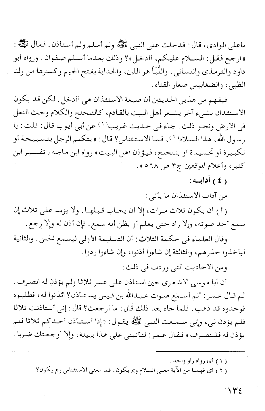بأعلى الوادف، صال: فدخلح! على النبى ح! يهنه ولم أسلم ولم أستأذن. فقال حلااث: