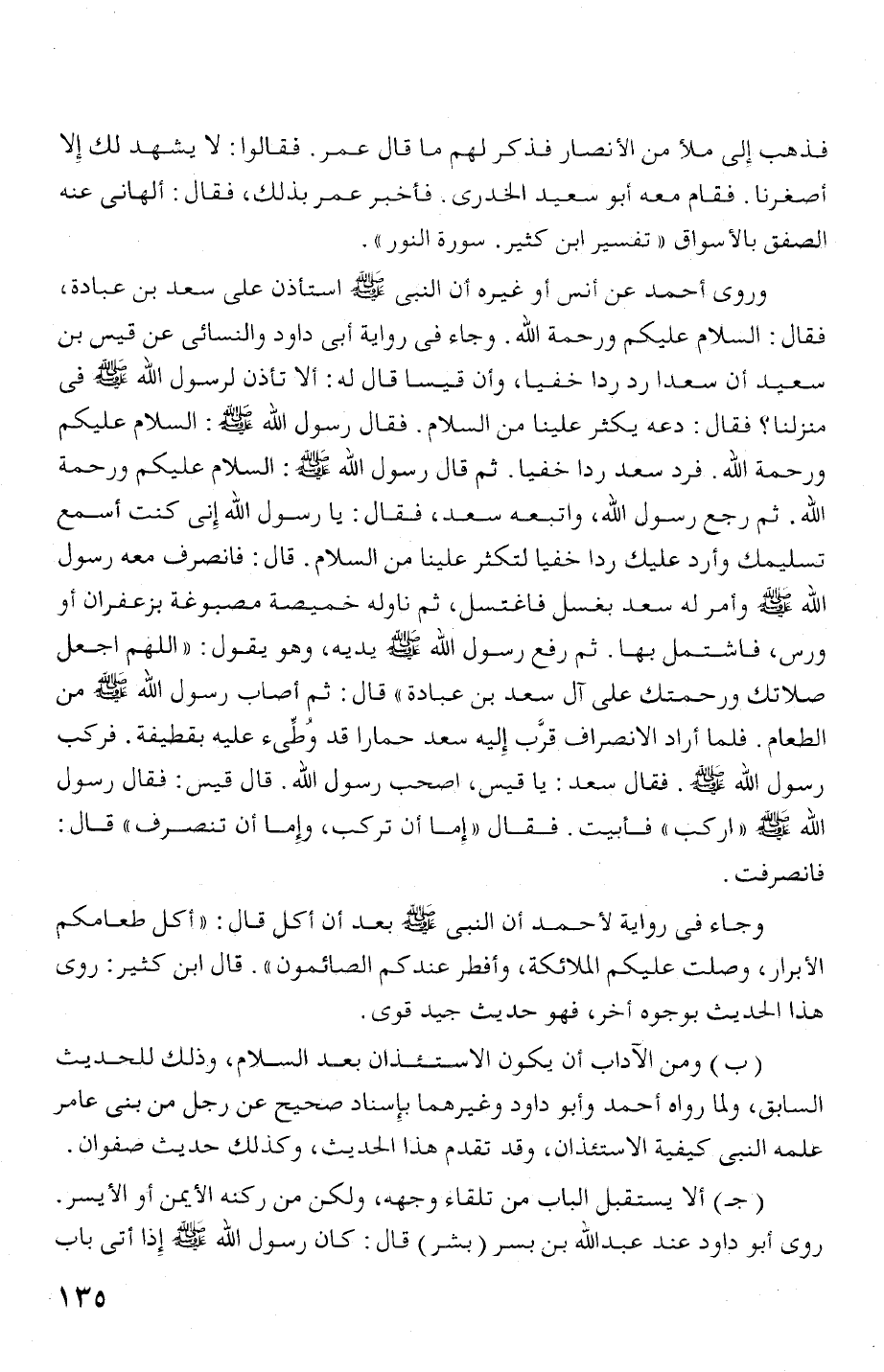 ورحمة الله. فرد سعد ردا خفيا. ثم قال رسول الله حطهأف: السلام عليكم ورحمة