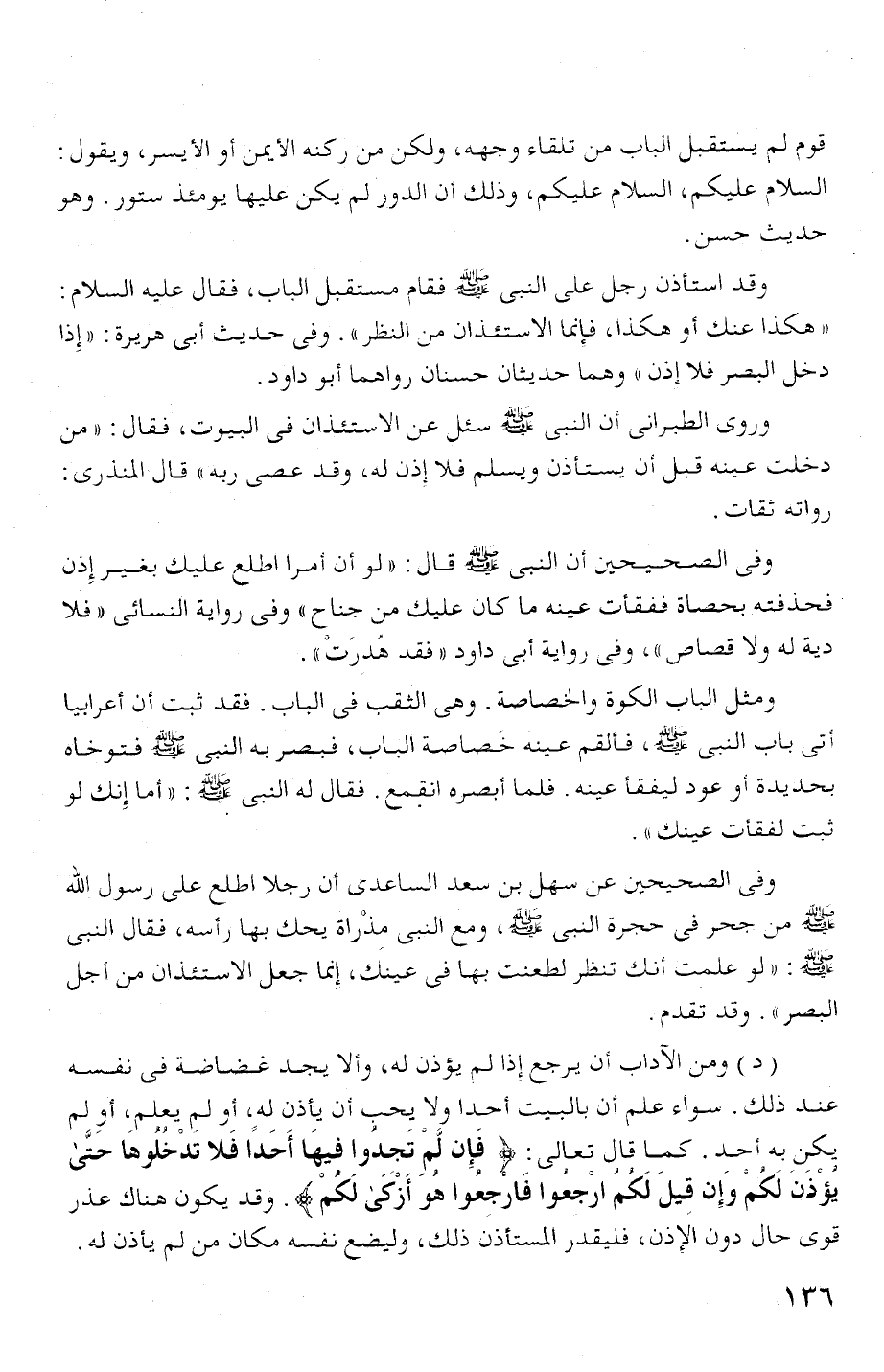 (د) ومن الآداب ان يرجع إذا لم يؤذن له، وألا يجد غخماضة فى نفسه