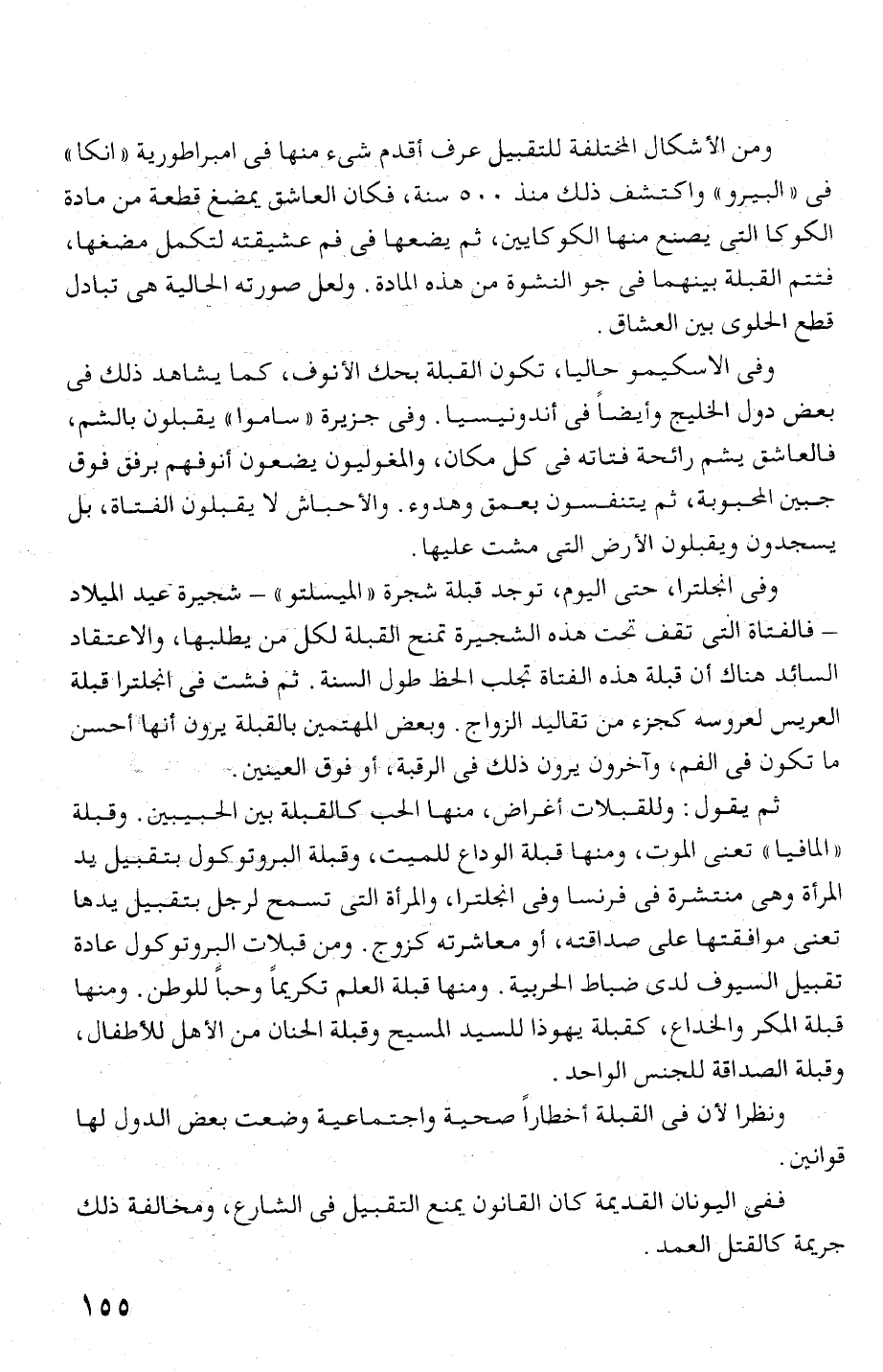 ثم يمول: وللقبلات أغراض، منها الحب كالمقبل! ة بين ا-لبيبين. وقبلة