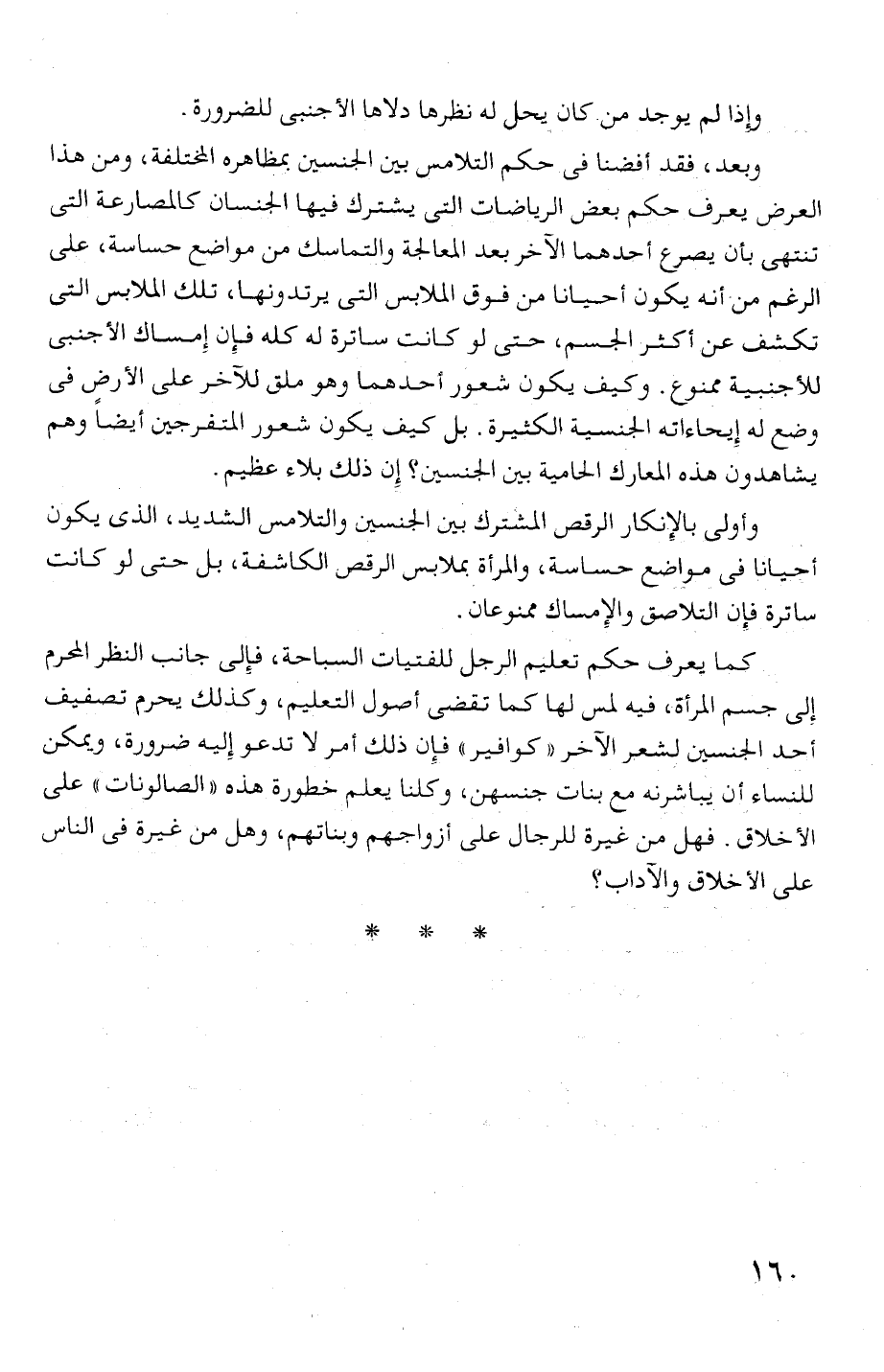 وبعد، فقد أفخشا فى حكم التلامس بين الجنسين بمظاهره الختلفة، ومن هذا
