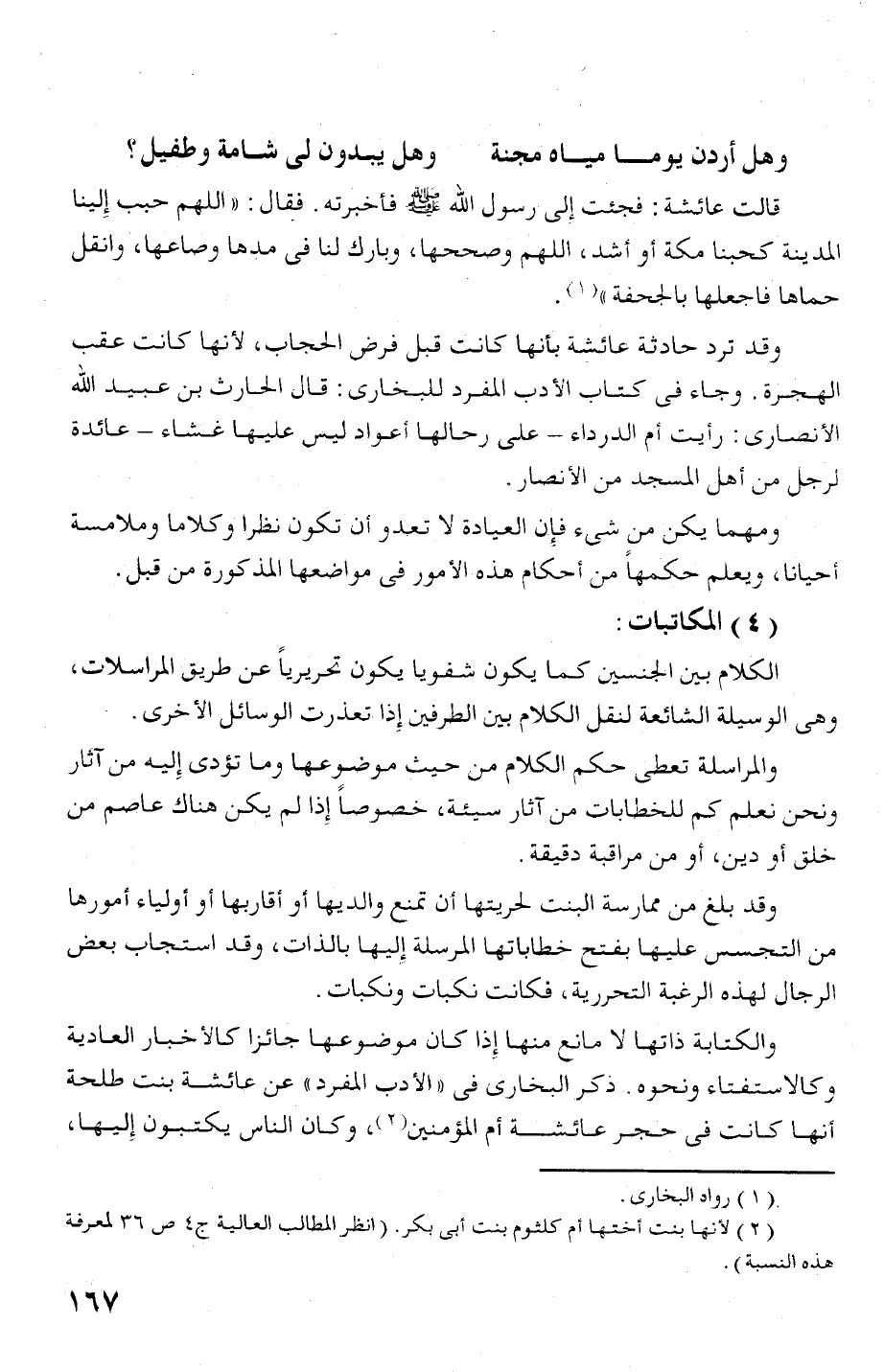 و صالاستفتاء ونحوه. ذ حر البخارف شى " الأ دب المفرد " عن عائشة بخت حللحة