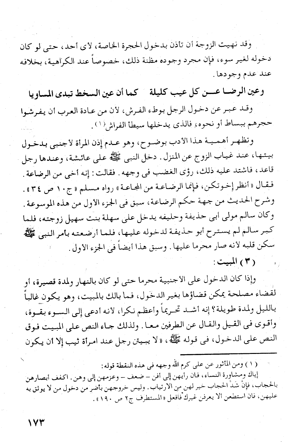 بيتها، عند غياب الزوج عن المنزل. دخك النبى ع! على عائشة، وعندها رجل