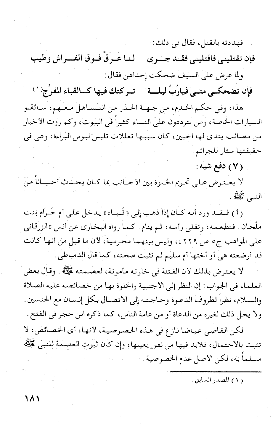 لا يعترض بذلل! لأ ن الفتنه فى خحهأ ته مأمونة، لعصمته اكليط. وقال بعخر