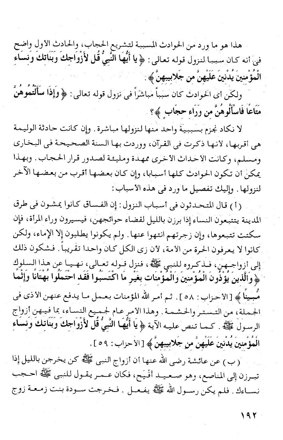 فئ أنه ثان سببا 9 لنزول قوله تعالى: (يما أيها النبى قل لأزواجك وبناتك ونساء