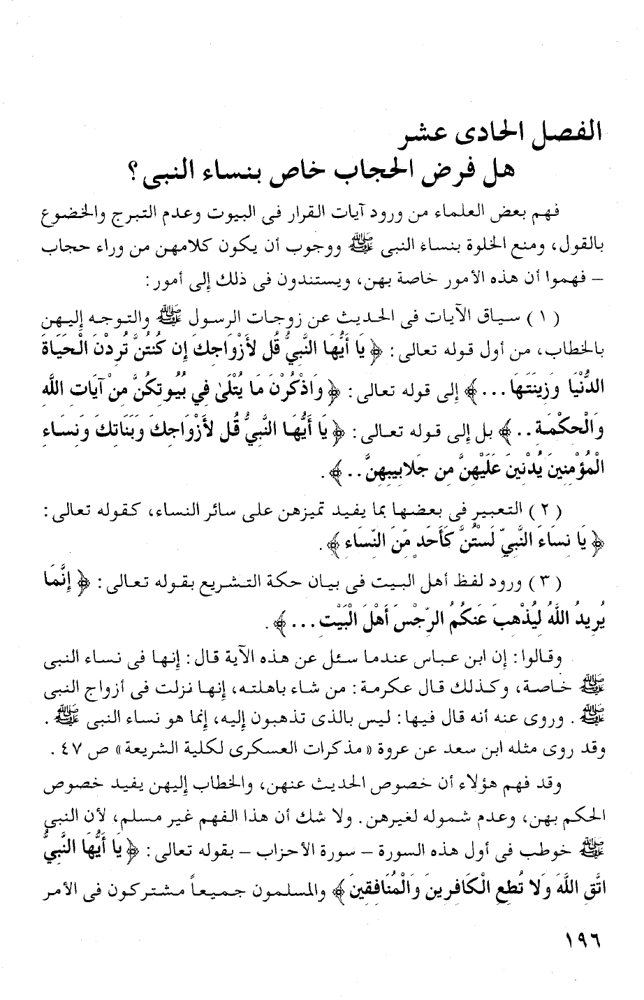وائحكمة. .! كو بل إلى قرله تعالى:! يا أيها النبي قل لأزواجك وبناتك ونساء