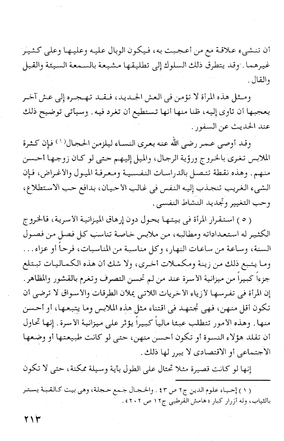 (3) استقرار المرأة فى بيتها يحول دون إرهاق الميزانية الا سرية، فالخروج