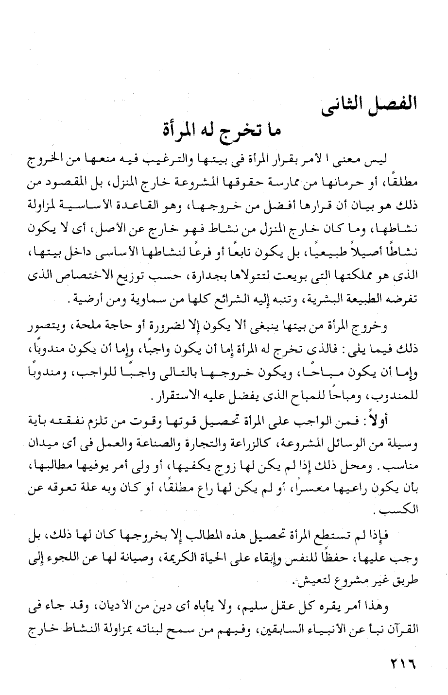 نشاطها، وما كان خارج المنزل من نشاط فهو خارج عن الا صل، أى لا يكون