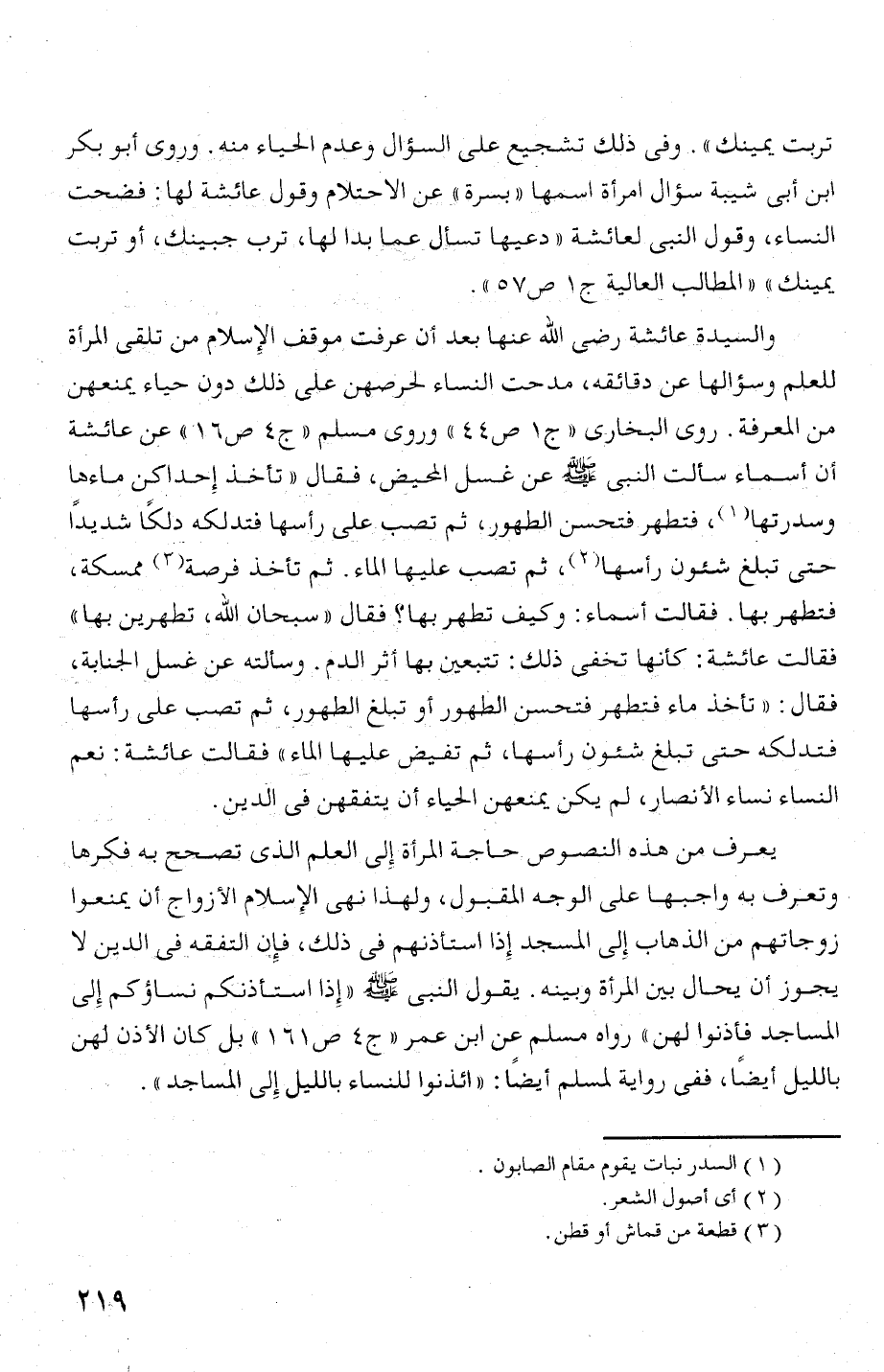 للعلم وسؤالها عن دصائقت، مدحت النساء لحرصهن عل ذلك دولن حياء يمنعهن